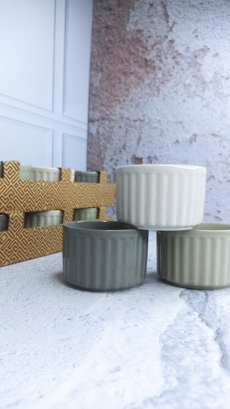 پیاله سه عددی رنگی طوسی سفید سبز برند ایکیا دارای پک مناسب هدیه