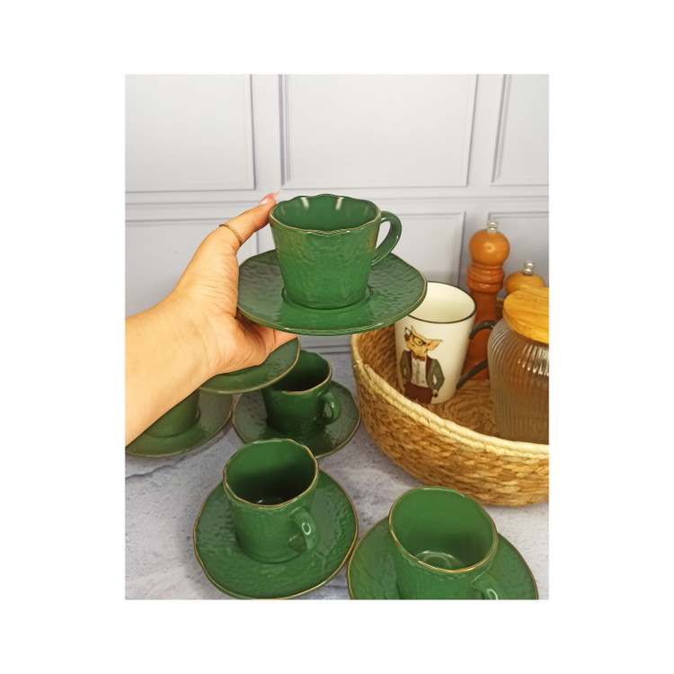 فنجان و زیر فنجانی ترک از جنس سرامیک ۱ فنجان و۱ زیر فنجانی وارداتی لب طلا سبز
