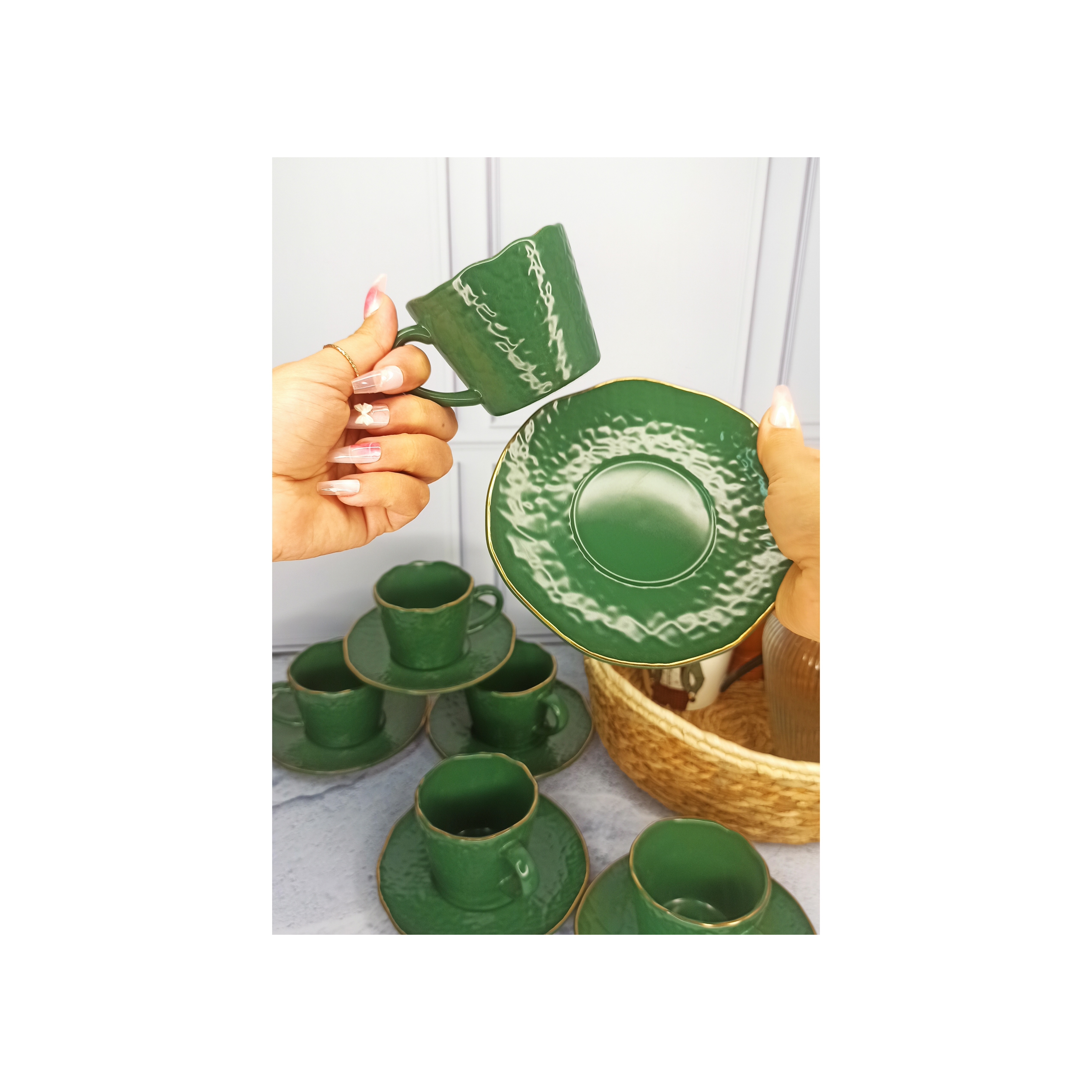 فنجان و زیر فنجانی ترک از جنس سرامیک ۱ فنجان و۱ زیر فنجانی وارداتی لب طلا سبز